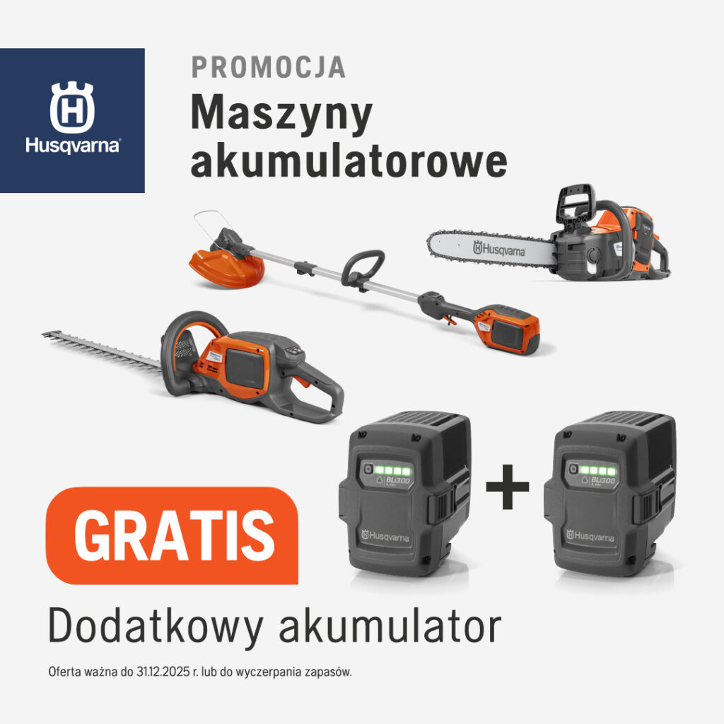 Kup jedną z maszyn akumulatorowych z akumulatorem i ładowarką w zestawie, a dodatkowy akumulator otrzymasz GRATIS! Oferta ważna do 31.12.2025 lub do wyczerpania zapasów.