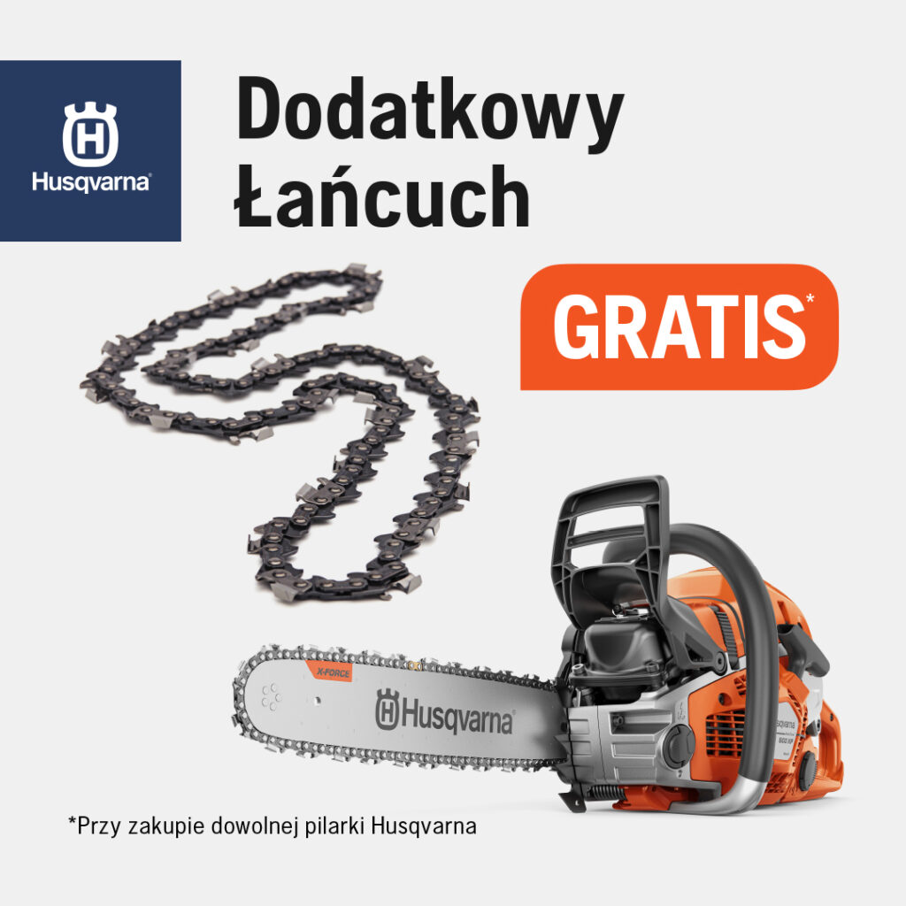 Teraz, przy zakupie dowolnej pilarki lub podkrzesywarki dodatkowy łańcuch otrzymasz GRATIS. Oferta ważna do 31.12.2025 roku lub wyczerpania zapasów.